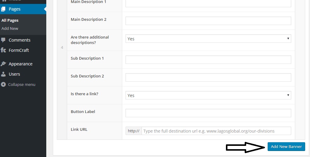 To add a new banner after the last one, an "Add New Banner" button is provided at the bottom: